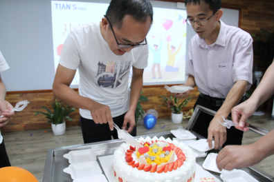 隨后,20余名入職三、五、十周年的員工代表通過“檢索關鍵詞”的主題游戲串起自己成長過程中一個又一個回憶。從“初識天俱時”的摸索前行到“指導人”的引領下突飛猛進;從“筑業大廈”的回憶到“天山大廈”的現在;一年一度的“天俱時科技論壇”從小家之言變成引領行業發展的名片,“改變”一直存在于我們成長發展的各個階段,每一個關鍵詞都記錄了我們在天俱時的點點滴滴。最后,入職三、五、十周年員工在溫馨的音樂中共同切開了象征圓滿幸福的蛋糕。