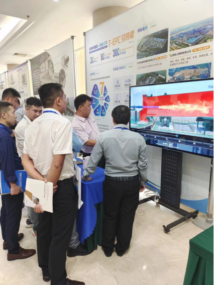 與會嘉賓在天俱時集團(tuán)展位前交流